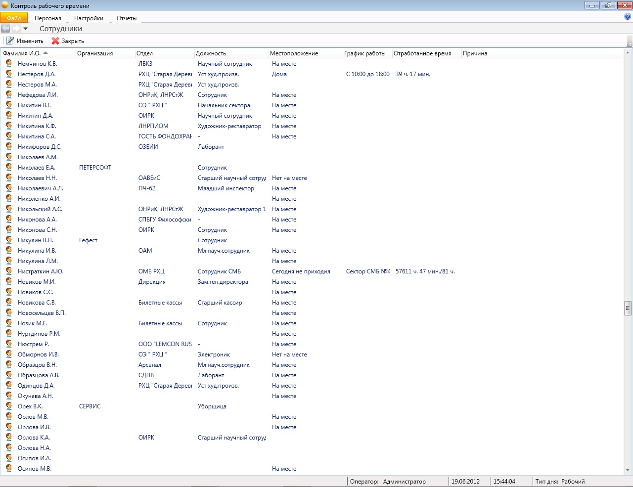 Программный модуль предназначен для ведения учета и контроля рабочего времени.